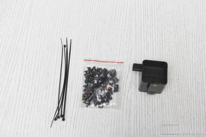配件方面该有的螺丝和绑线带全都有,那个小黑盒子其实是显卡垂直摆放位的转接盒。