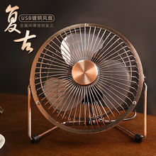 usb镀铜小风扇小型迷你学生食堂床上挂床头寝室桌面办公室台式家用6寸复古电风扇静音随身大风力小电扇
