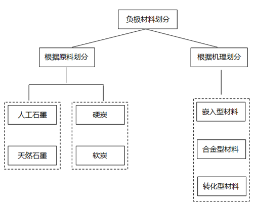 锂离子电池负极作为电子跃迁的配体、从类型来分化型负极材料和转化型负极材料。锂电池负极材料关乎安全性风险,在锂离子电池正极材料中天然石墨和人造石墨占据着90%以上的负极材料行业份额; 中间相碳配体(MCMB)、无定形碳、硅或锡类仅占据小部分行业营收.