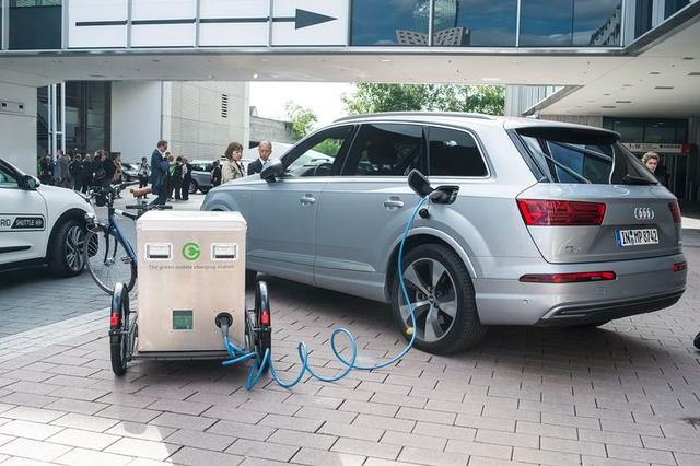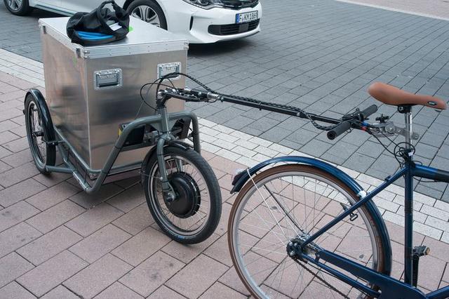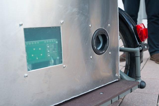 于是,Lang和此外两位搭档——Philipp Anders和Paul Stuke博士发明了一种三轮自行车拖车,作为移动充电站的载体。该拖车加上电池重150公斤,由位于前后轮的电动机驱动。Christian Lang表示,希望移动充电站在为用户送去充电服务的过程中,也相同做到零排放。