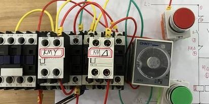 第四行: KM△常闭线,每个人都注意这一行,一个进入时间继电器线圈,一个进入时间继电器常闭,一个进入KMY常开. 接线时必须加以区别,每个人都可以在图片中看到接线