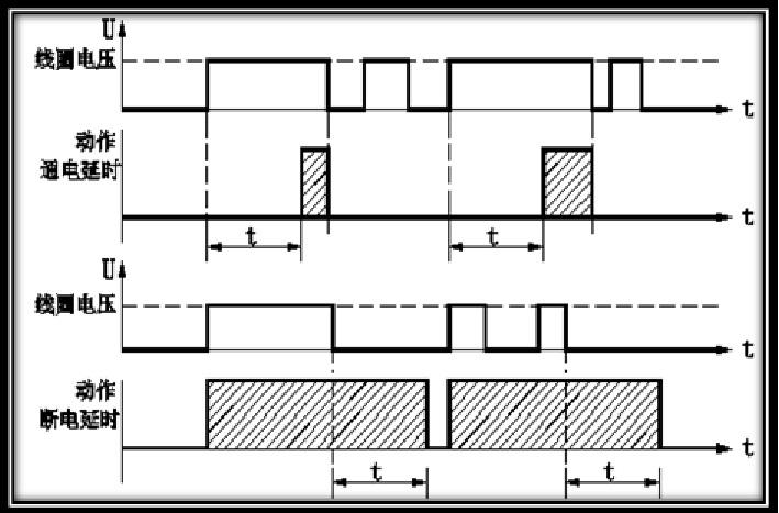 从顶部开始,第一和第二张图是通电延迟时间继电器的时序图,第三和第四张图是掉电时间继电器的时序图.
