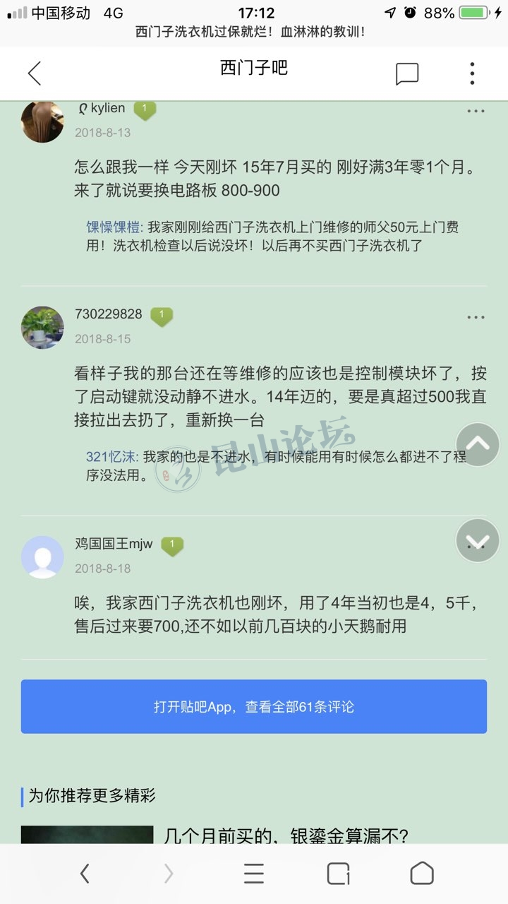 因此,有理由怀疑这种洗衣机具有设计缺陷和严重的质量问题. 目前,出于售后推卸责任,我将竭尽全力保护权利,包括但不限于在大型微博论坛上发帖,国家有关部门的投诉,如果无法解决,我将砸开直播视频!