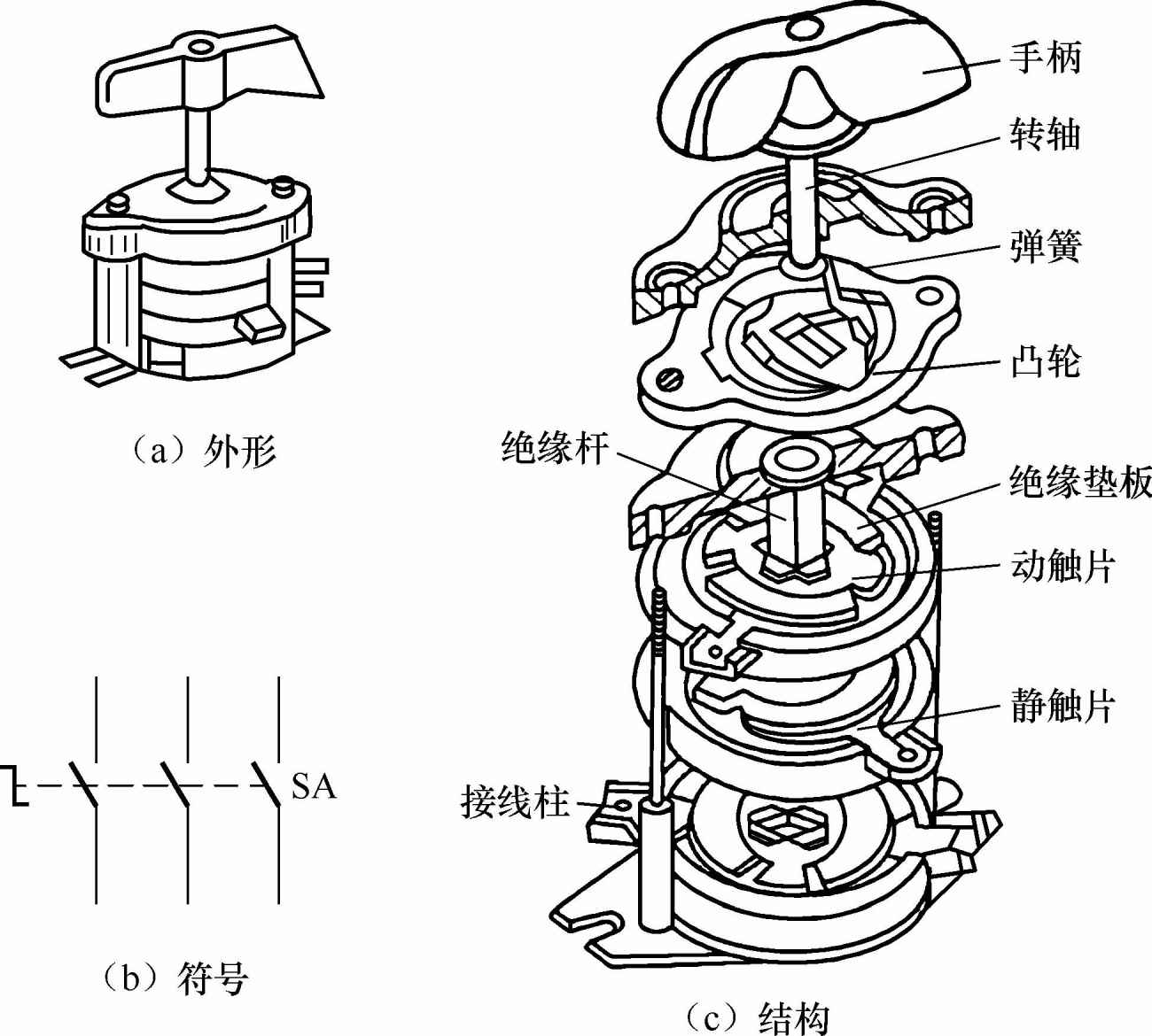 图1-49组合开关的结构和符号