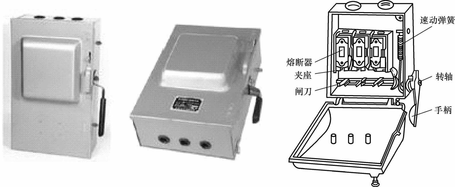 图1-48铁壳开关的外观和内部结构