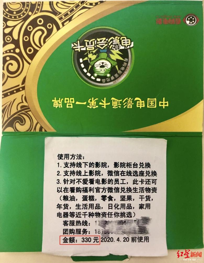 《红星报》记者获悉,“看电影”会员卡是由武汉英鹰正华文化传播发行的. 看袁女士提供的持卡人,清楚地标明了其中的金额. 这张卡是330元. 在使用它之前,她通过她的官方微信号“ Looking at Purchase Benefits”对其进行了检查,并在卡中显示330分.