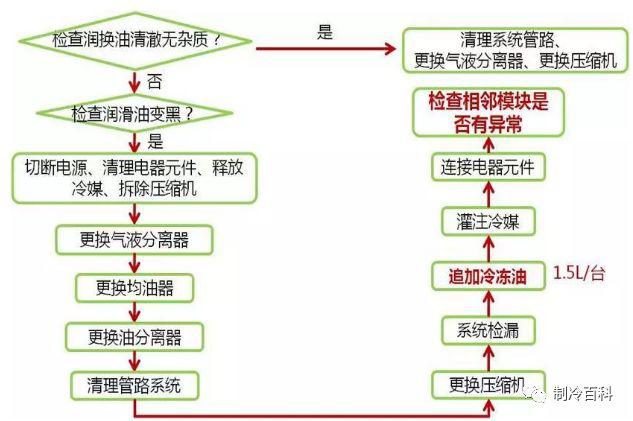 当压缩机出现故障并需要更换时,请检查系统中的润滑油是否清洁且无杂质?如果颜色变黑,则需要更换油分离器,油均质器,气液分离器和压缩机,并清洁管道. 如果润滑油澄清且无杂质,则还必须清洁管道并更换气液分离器和压缩机.