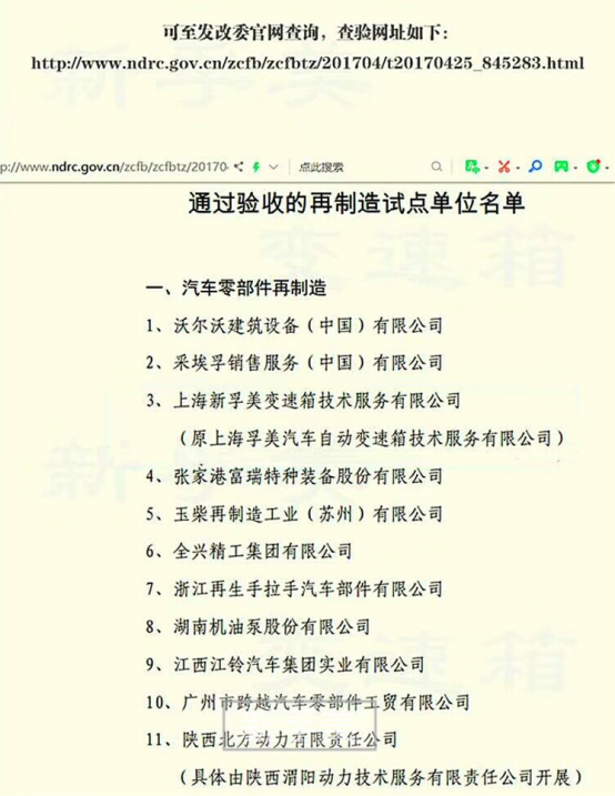 这是国家发展和改革委员会授权的变速箱再制造企业. 这些企业和制造商具有变速箱总成和附件再制造的技术和资格.