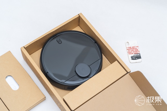Mijia扫地机器人打开包装箱. 环保的纸箱包装具有简单的结构和适当的保护. 每个组件分别包装并用布袋单独包装,以防止在运输过程中刮擦钢琴漆在塑料表面上.