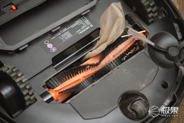 Mijia扫地机器人第一次扫地,这非常脏. 滚筒刷也用塑料袋和牙签包裹. 这样不好,缠绕主刷会增加电机负载,以后要多加注意,不要在家里太脏乱. 幸运的是,它是一款智能扫地机. 针对主刷的缠绕情况,将采取自动关机保护等措施.
