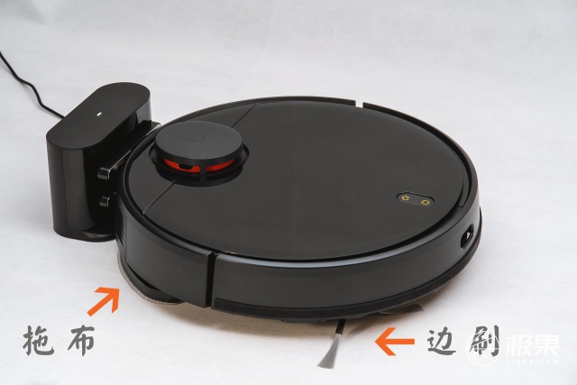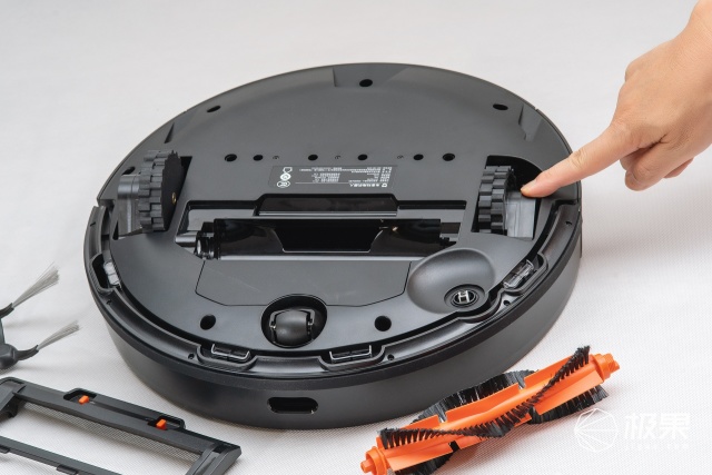 左右轮尺寸较大,底盘与悬架系统之间的设计与越野轮类似,具有很大的弹性空间,使米家扫地机器人具有一定的越过障碍物的能力. 可以跨过门槛,踩上地板垫,然后爬上拖鞋.