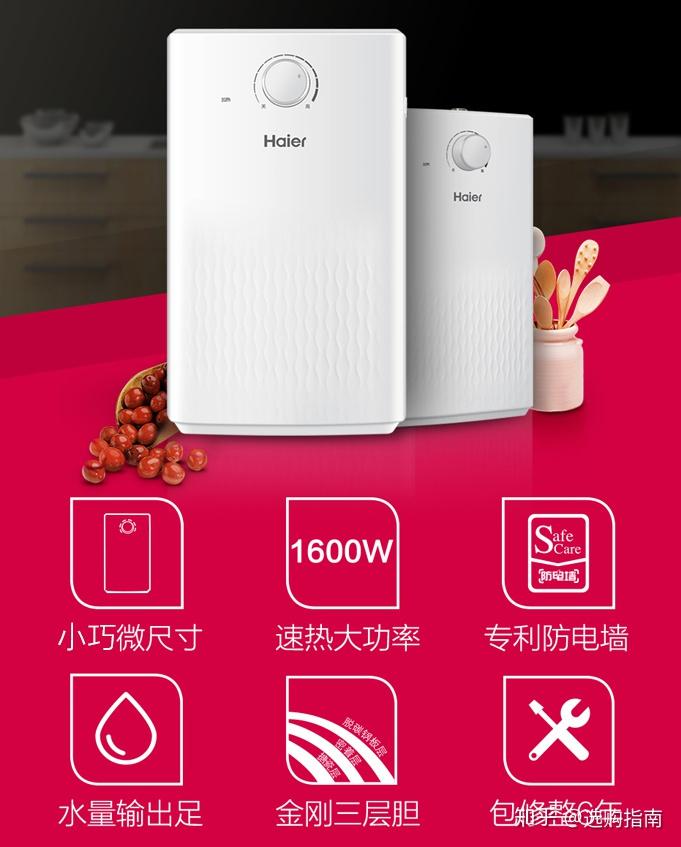 2. Haier海尔电热水器厨房热水厨房瓷厨具厨房厨房防电墙5升1600W快速加热在出水口下橱柜安装全国包邮EC5U