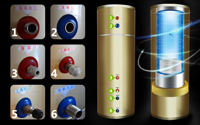 空气能热水器的进出水管优选25PPR管(俗称6分管),注意水管螺口还是4分;空气能热水器是热水器,出水管实际上是总管,口径要大些,这样可以避免“忽冷忽热”现象。