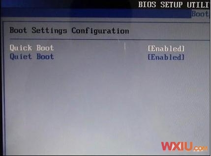 1,引导设置配置: 单击此选项可进入引导选项设置,并且有一个子菜单可查看两个选项(请参见图11),分别是QuickBoot(快速引导设置)和Quiet Boot.