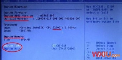 此菜单可以设置基本的系统配置,例如时间,日期等. 它也是本书的系统概述(系统概述). 我画的部分是系统BIOS版本号和显示BIOS版本号. 其次是CPU信息和核心速度;以下是内存信息. 带圆圈的部分是计算机的时间和日期,您可以设置书籍的时间和日期.