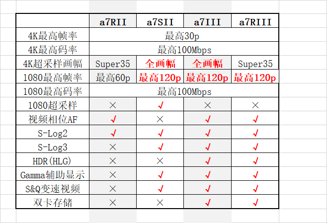 -表数据的单位为EV,可以通过直接减法获得两种乘积之间的差. 例如,a7III的公差比a7II好1/3左右.