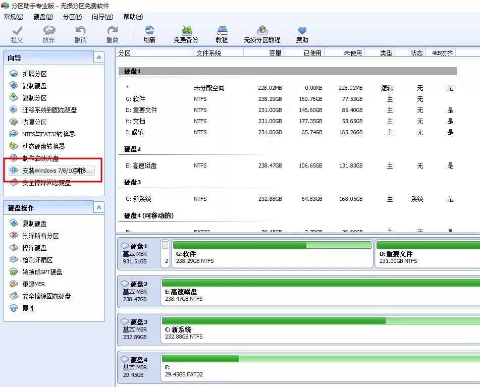 让我们进入今天的主题,通过几个简单的步骤来教您使用“分区助手”在固态驱动器上制作Win10系统
