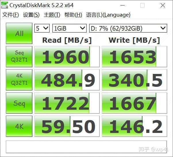 CrystalDiskMark软件测试: 顺序读写速度约为1653MB / s,读取速度为1960MB / s.