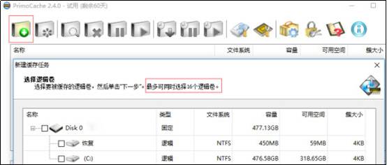 启动PrimoCache软件后,选择要加速的硬盘驱动器,然后单击“下一步”. 您可以检查同一硬盘的不同分区(最多可以选择16个逻辑分区). 例如,不需要加速备份数据分区并节省资源. 接下来,选择配置模式,最理想的当然是“提高读写性能”.