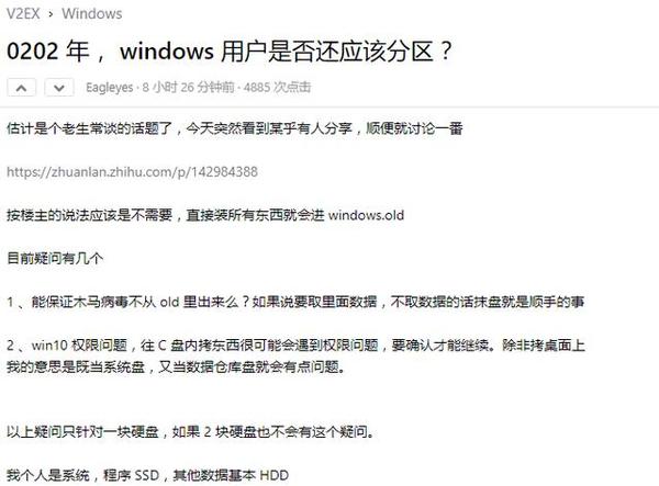 但是,您是否考虑过是否真的需要对硬盘进行分区?不久之前,有人在程序员社区V2EX上提出了这个问题,这使大多数人争论了一段时间.