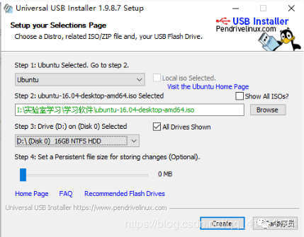 2. 下载通用USB安装程序以制作USB启动盘. 我以前使用过拒绝,但已安装的系统无法启动. 建议使用ubuntu官方网站支持的Universal-USB-Installer.