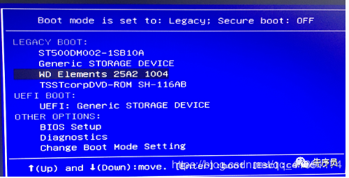 在插入USB闪存驱动器和移动硬盘后,打开计算机电源,然后按F12键选择启动方法作为USB闪存驱动器.
