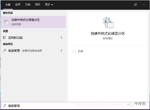 2,单击左下角开始,搜索磁盘管理: