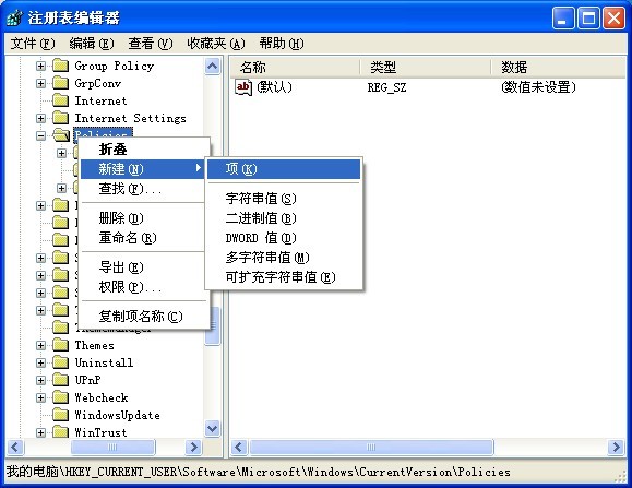 2. 进入HKEY_CURRENT_USER \ SoftWare \ Microsoft \ Windows \ CurrentVersion \ Policies分支.