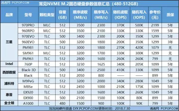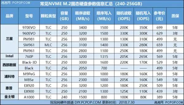 那么,目前市场上常见的M.2 NVME SSD的性能水平如何?我们收集了他们的信息并制作了两个表,分别为240-256GB和480-512GB. 主流模式.