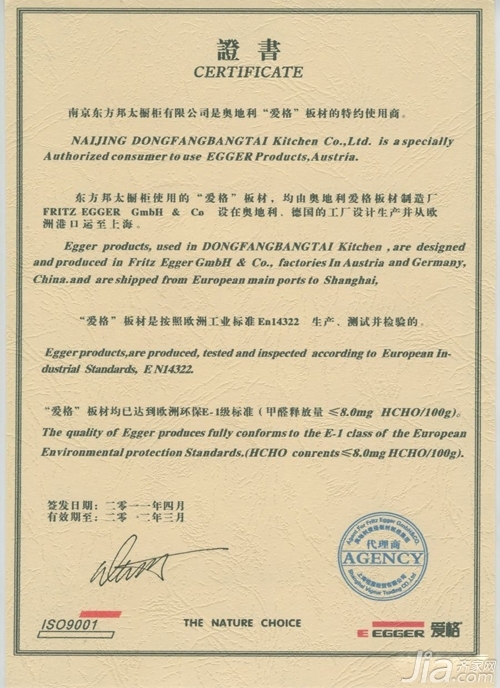 在选择商家上,爱格授权合作的都是具有一定规模的企业。在选择橱柜、家具时,请留意厂商是否具有由爱格板指定代理商公司签发的“授权书”。