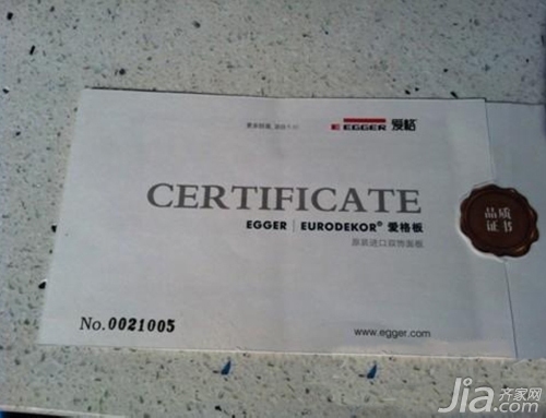 爱格板品质鉴定:一是授权证书(可以肯定的是没有授权证书的肯定不是正品),二是品质证书(决定客户家使用的是否是真的爱格板)