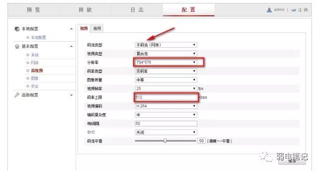 如果发现录像机未获取某个频道的子流,建议使用IE浏览器直接访问网络摄像机并修改子流参数. 建议将分辨率更改为4CIF,将比特率更改为512k.