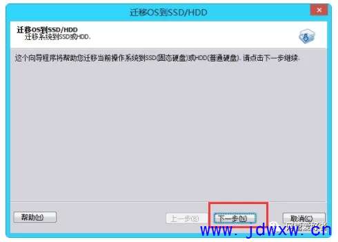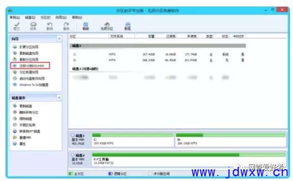 打开分区助手,然后单击左侧的“将操作系统迁移到SSD / HDD”功能.