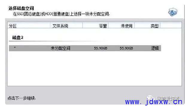 找到我们的SSD固态驱动器(如果未实现分区,则可以在下一步中进行分区).
