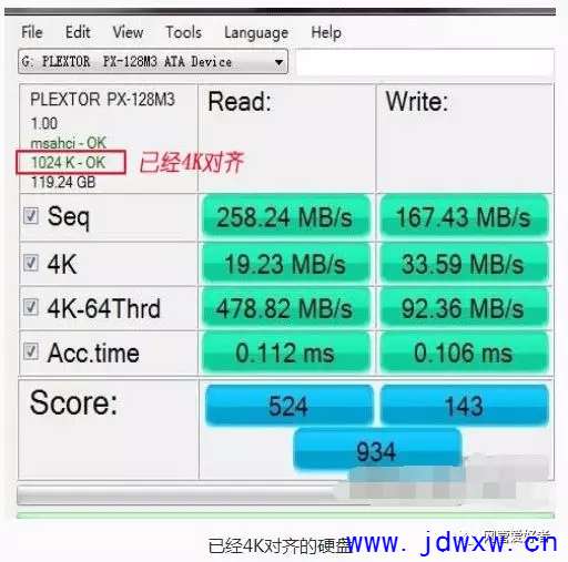 如何检查是否4K对齐,您需要检查固态驱动器或机械硬盘是否4K对齐,只需下载“ AS SSD Benchmark”软件,然后运行以查看是否4K对齐,它会显示绿色. 如果没有4K对齐,它将以红色显示. 不在乎具体值,如图所示: