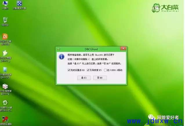 10. 弹出该对话框,检查“重新启动”选项,完成后进行引导修复,然后单击“是”执行下一步;