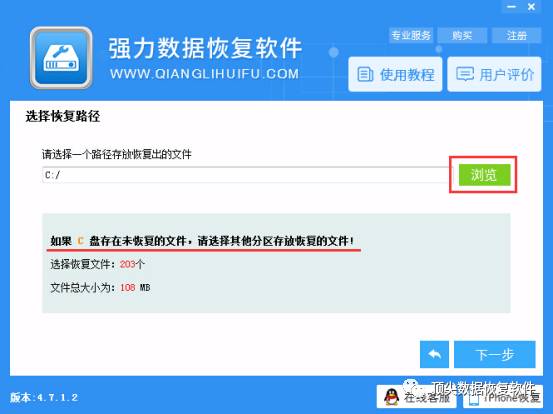 6. 选择恢复文件的存储位置. 如果恢复的文件很多,请准备一个大容量的移动硬盘. 单击“浏览”以设置保存路径,然后单击“下一步”按钮进行还原.