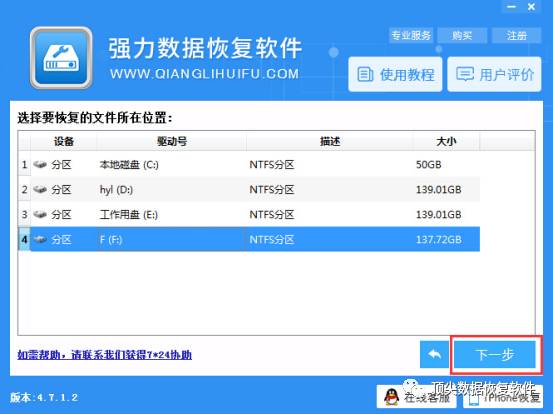 3. 请在功能强大的数据恢复软件界面中选择要恢复数据的计算机硬盘,单击鼠标以选择磁盘分区,然后单击右下角的“下一步”按钮进入文件扫描状态.