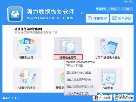 2. 这次针对数据恢复情况选择“错误格式化硬盘”.