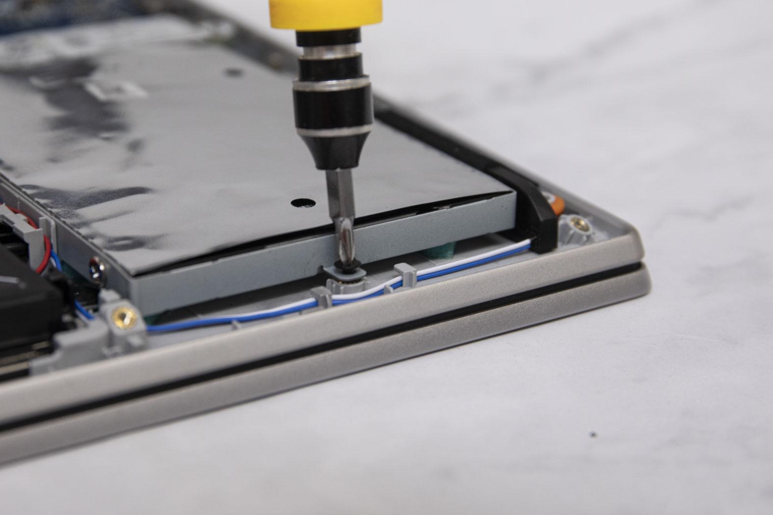 如果要更换硬盘驱动器,只需拧下黑色螺钉,我们就可以卸下整个硬盘驱动器外壳,用新的外壳替换它,然后拧回该螺钉以完成任务.