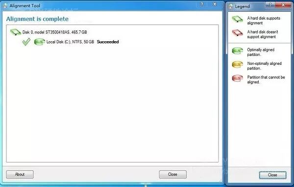 5. 对齐后,计算机将自动重新启动,然后进入系统后,将弹出以下窗口. 如下图所示,分区图标已变为绿色,并且其后有成功的成功徽标. 现在,固态硬盘已与4K对齐.