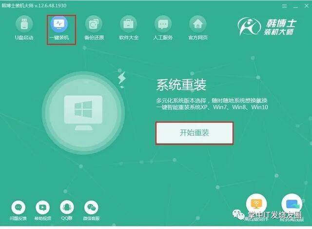 第一步: 在“一键安装”中单击“开始重新安装”,然后按照提示继续操作.