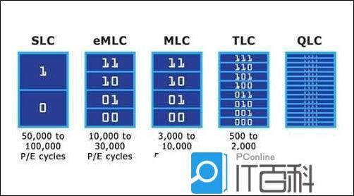 除了熟悉的闪存芯片的SLC,MLC和TLC之外,还有QLC闪存芯片。