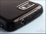 顶部,三星i7500安置了耳机接口、数据线接口,另外拐角处有手机绳挂口。
