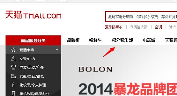 1、首先进入天猫商城,并登陆自己的账号,然后进入“积分”,如下图所示: