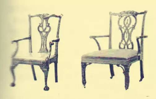 齐本德尔最具代表性的就是座椅。图中,Frank办公室中的薄板透雕靠背扶手椅(Splat back)就是其代表之一(还有另外两种是Allis Over Back/阿利斯靠背、Ladder Back/梯背,可见下图)。