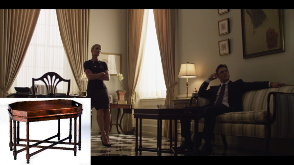 Frank的办公室是齐本德尔式家具(Chippendale Furniture),“齐本德尔”由英国著名家具工匠汤玛斯·齐本德尔(Thomas Chippendale)而来,他的设计活动从18世纪30年始,40年代后流行起来。