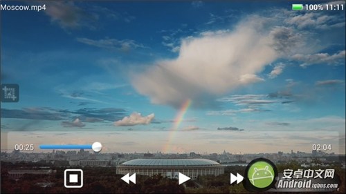 作为一款高配置的四核智能手机,它的影音播放也是很重要的,用户在游戏之余也可以看看电影、听听音乐。上图是MP4格式的1080P测试影片,摩奇i5s播放毫无压力,可以完全解码。