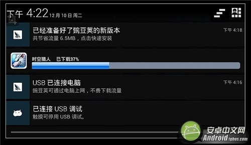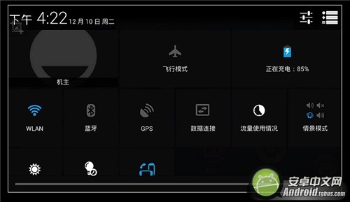 摩奇i5s的快捷设置栏,这个设计与平板电脑的下拉菜单类似。