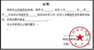 d)证明右下角要填写完整的派件名称,并加盖快递公司公章证明。